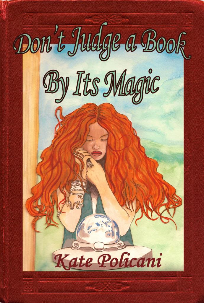 The art work is lovely, but I agree with the other comments in that it isn’t clear what she’s holding. I’m not sure that really matters, though. I think the title lettering could be stronger however, more like the lettering for your name. It looks a little ‘wobbly’. I’d try lining it up straight rather than curved, that may be all it needs.